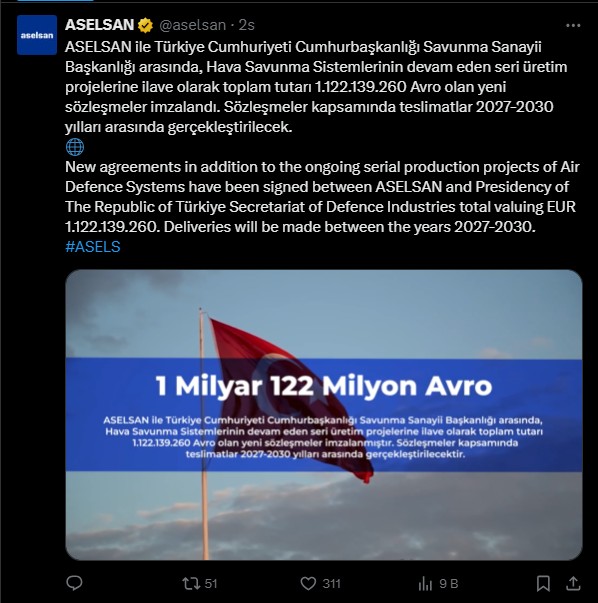 ASELSAN'ın resmi X hesabından yapılan açıklamada: