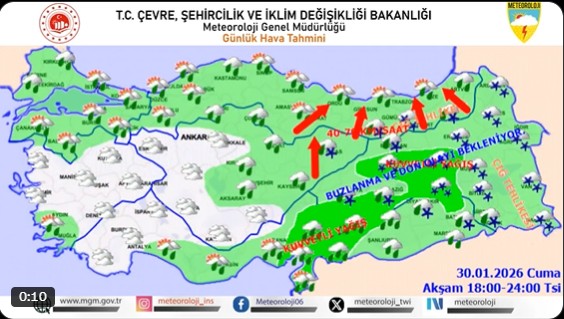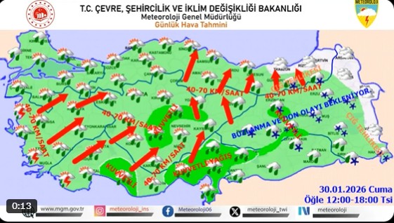 Meteoroloji Genel Müdürlüğü, 30 Ocak 2026 Cuma gününe ilişkin hazırladığı son değerlendirmede, ülke genelinde hava sıcaklıklarının mevsim normallerinin üzerinde seyredeceğini ancak kuvvetli yağış, rüzgar ve çığ tehlikesine karşı uyardı. Birçok bölge için sarı kodlu uyarılar yayımlandı.
