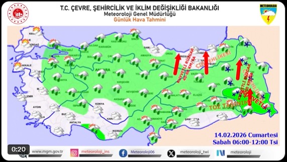 Meteoroloji Genel Müdürlüğü, 14 Şubat 2026 Cumartesi gününe ilişkin hazırladığı son değerlendirmede, yurt genelinde etkili olacak çeşitli hava olayları nedeniyle kapsamlı uyarılar yayımladı. Hava sıcaklıklarının mevsim normallerinin üzerinde seyredeceği tahmin edilirken, birden fazla bölgede hayatı olumsuz etkileyecek meteorolojik hadiseler bekleniyor.