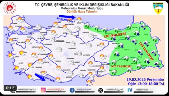 19 Şubat 2026 Perşembe tarihli son hava durumu tahminleri, Türkiye genelinde değişken bir hava tablosu çiziyor. Hava sıcaklıklarının batı kesimlerde 3 ila 5 derece artarken, iç ve doğu bölgelerde 2 ila 4 derece azalması bekleniyor. Ancak asıl dikkat çeken, birbirinden farklı dört meteorolojik tehlikenin aynı anda çeşitli bölgelerde etkili olacak olması.