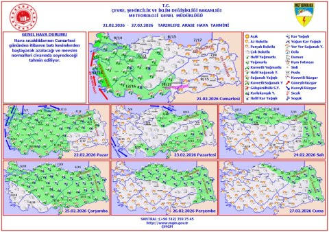 Meteoroloji Genel Müdürlüğü'nün yayınladığı haftalık tahmin raporu, 21-27 Şubat 2026 tarihleri arasında hava sıcaklıklarının değişken bir seyir izleyeceğini ortaya koydu. Özellikle haftanın ikinci yarısından itibaren batı kesimlerde hissedilmeye başlayacak olan serin hava dalgası, sıcaklıkları mevsim normallerine çekecek.