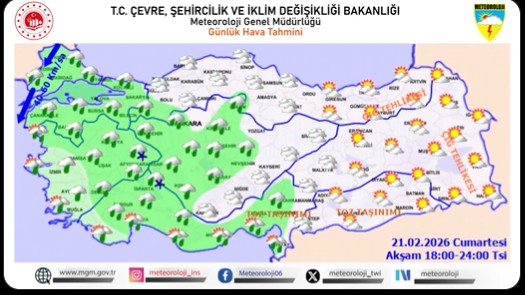 CHP'li Demir'den Öğrencilere Sağlık Güvencesi Teklifi : 'Öğrencilerimiz Bu Haktan Kesintisiz Yararlanmalıdır.'21 ŞUBAT 2026 – Meteoroloji Genel Müdürlüğü, ülke genelini etkisi altına alacak önemli bir hava durumu için bir dizi kritik uyarı yayımladı. Uyarılarda, kuvvetli yağış, şiddetli rüzgar ve çığ tehlikesinin gündemde olacağı belirtildi.