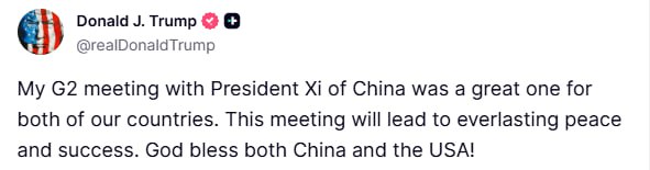 ABD Başkanı Donald Trump ile Çin Devlet Başkanı Xi Jinping arasında gerçekleşen G2 düzeyindeki üst düzey toplantı sona erdi. Toplantının ardından bir açıklama yapan Trump, görüşmelerin her iki ülke için de oldukça olumlu geçtiğini ifade etti.
