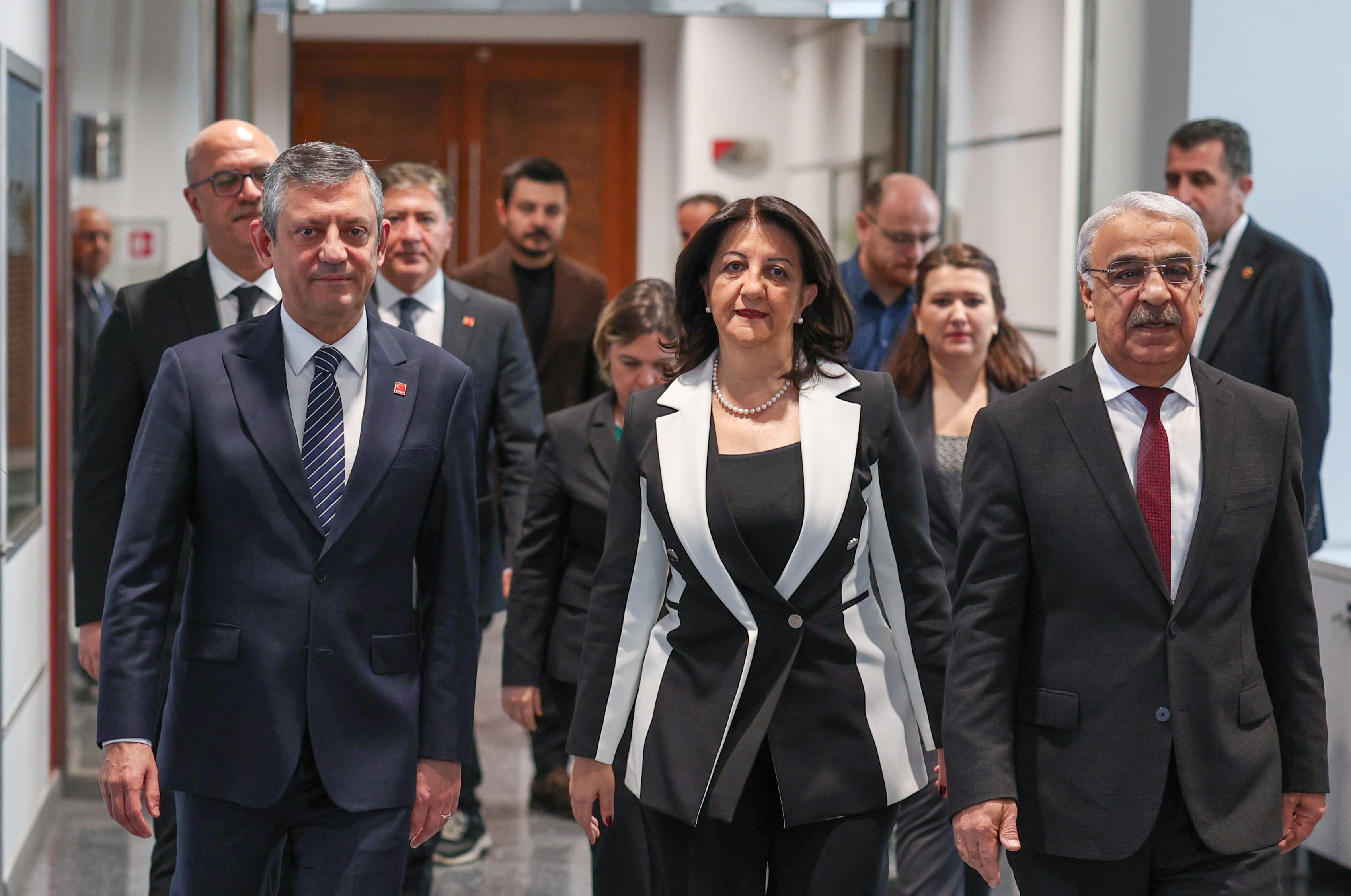 Halkların Eşitlik ve Demokrasi Partisi (DEM Parti) İmralı Heyeti, siyasi parti temasları kapsamında bugün Cumhuriyet Halk Partisi (CHP) Genel Merkezi'ndeydi. Heyet adına Pervin Buldan, Mithat Sancar ve Özgür Faik Erol'un katıldığı görüşmede, CHP Genel Başkanı Özgür Özel ile bir saat 20 dakika süren kapalı kapılar ardındaki görüşme gerçekleştirildi.