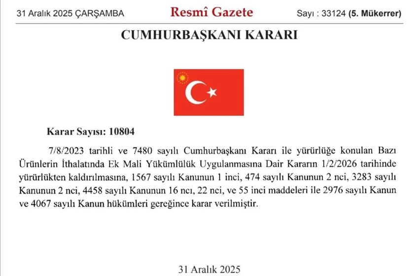 Resmi Gazete’nin 31 Aralık 2025 tarihli mükerrer sayısında yayımlanan bir Cumhurbaşkanı Kararı, altın ve mücevher sektöründe vergi değişikliği tartışmaları başlattı. 10804 sayılı kararla, daha önce "Ek Mali Yükümlülük" adı altında tahsil edilen verginin 1 Şubat 2026 itibarıyla kaldırılacağı açıklandı. Bu durum, özellikle AB ve serbest ticaret anlaşması bulunmayan ülkelerden yapılan altın, pırlanta ve mücevher ithalatındaki %20'lik ek yükün ortadan kalktığı yönünde yorumlandı.