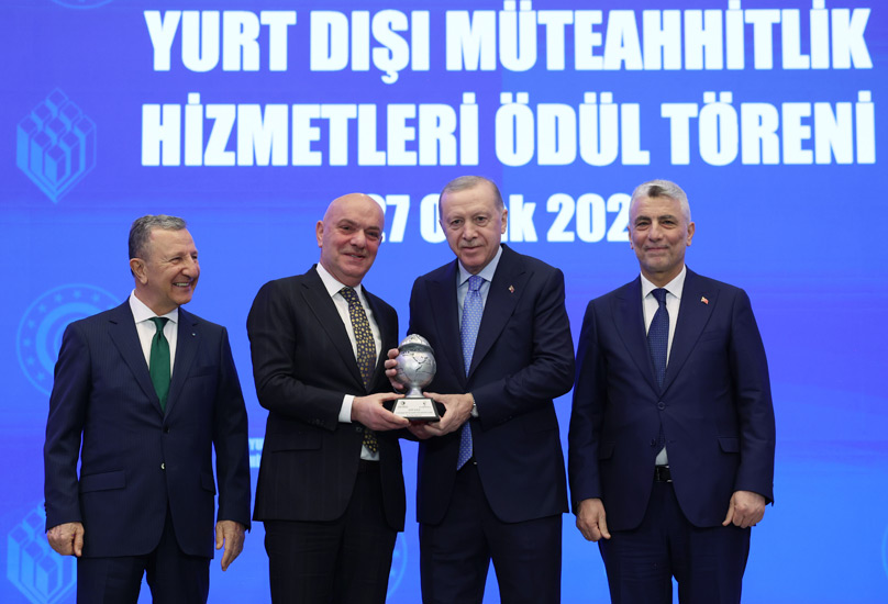 Cumhurbaşkanı, törende ayrıca, 52 yılda 145 ülkede 12 bin 795 projeyi hayata geçiren Türk müteahhitlik sektörünün de bu ekonomik başarıdaki payına dikkat çekerek, sektör temsilcilerine tebrik ve teşekkürlerini iletti.