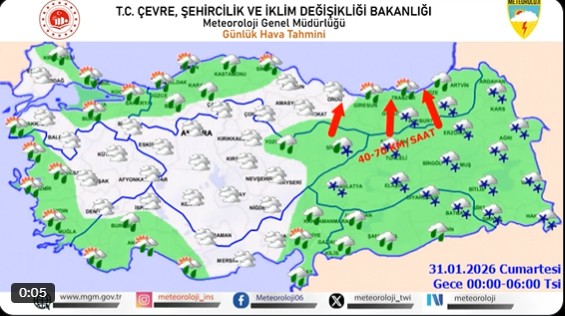 Hava tahminlerine göre, rüzgarın; Marmara'nın güneyi, İç Ege, Batı Akdeniz'in iç kesimleri, İç Anadolu ve Karadeniz’in iç kesimlerinde kuvvetli (40-70 km/saat) ve kısa süreli fırtına şeklinde esmesi öngörülüyor.